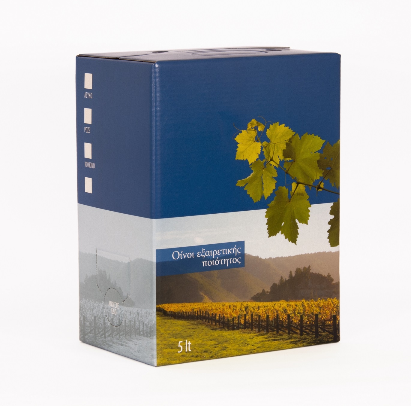 - Όλα τα χαρτοκιβώτια φέρουν ενδείξεις για "λευκό", "ροζέ" ή "ερυθρό" οίνο καθώς και εγκοπή για τη μεταφορά τους. - Το χαρτοκιβώτιο κλείνει πάνω με χρήση ταινίας και κάτω αυτόματα.
