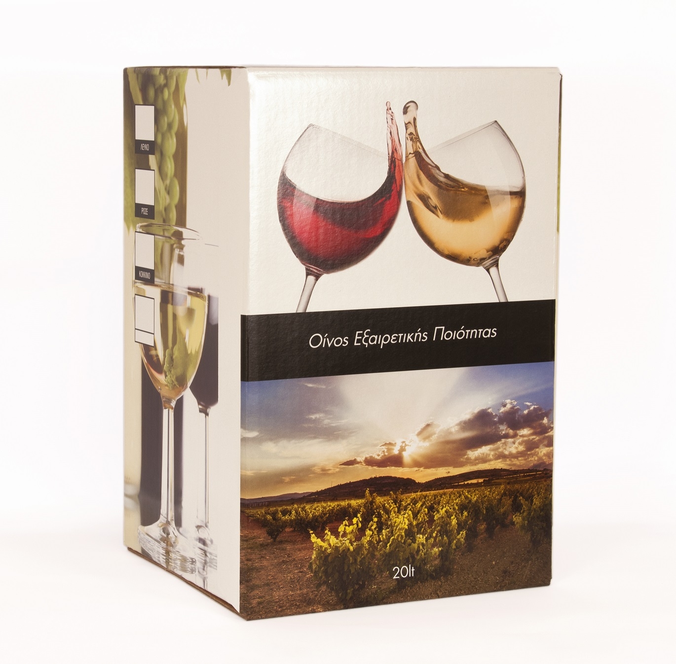 - Όλα τα χαρτοκιβώτια φέρουν ενδείξεις για "λευκό", "ροζέ" ή "ερυθρό" οίνο