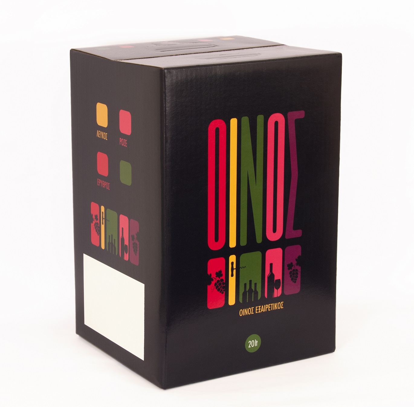 - Όλα τα χαρτοκιβώτια φέρουν ενδείξεις για "λευκό", "ροζέ" ή "ερυθρό" οίνο