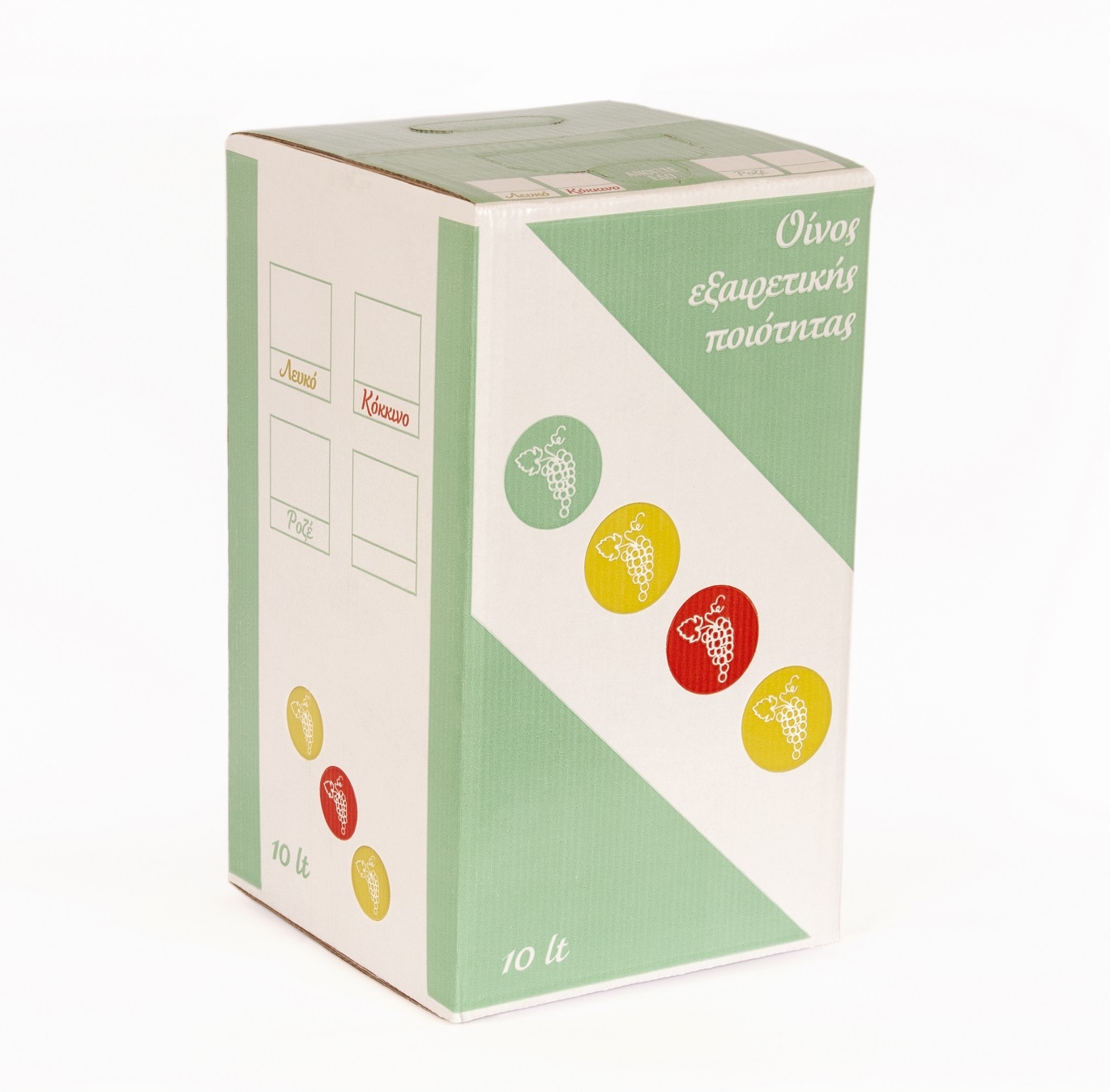 - Όλα τα χαρτοκιβώτια φέρουν ενδείξεις για "λευκό", "ροζέ" ή "ερυθρό" οίνο