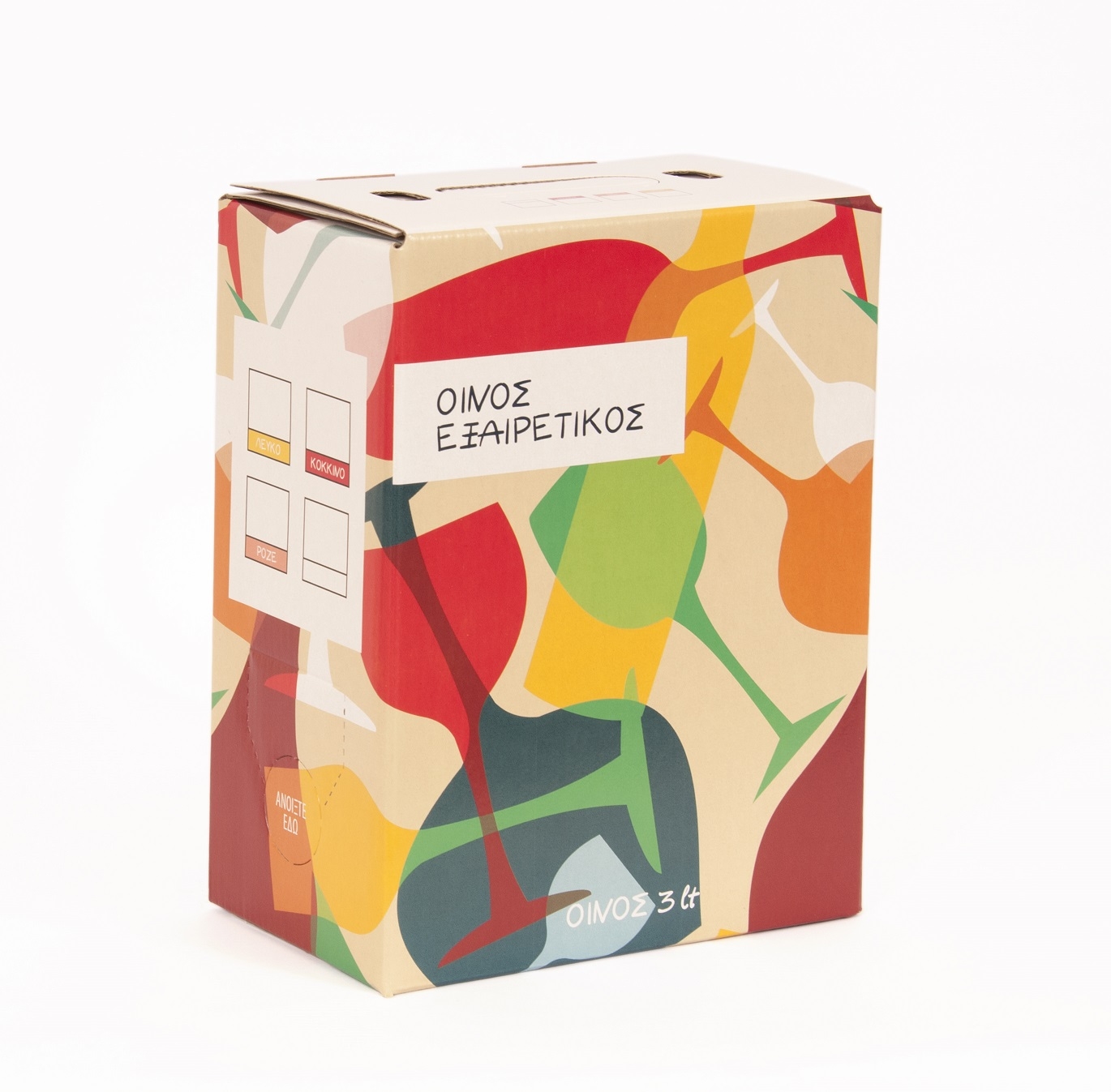 - Όλα τα χαρτοκιβώτια φέρουν ενδείξεις για "λευκό", "ροζέ" ή "ερυθρό" οίνο