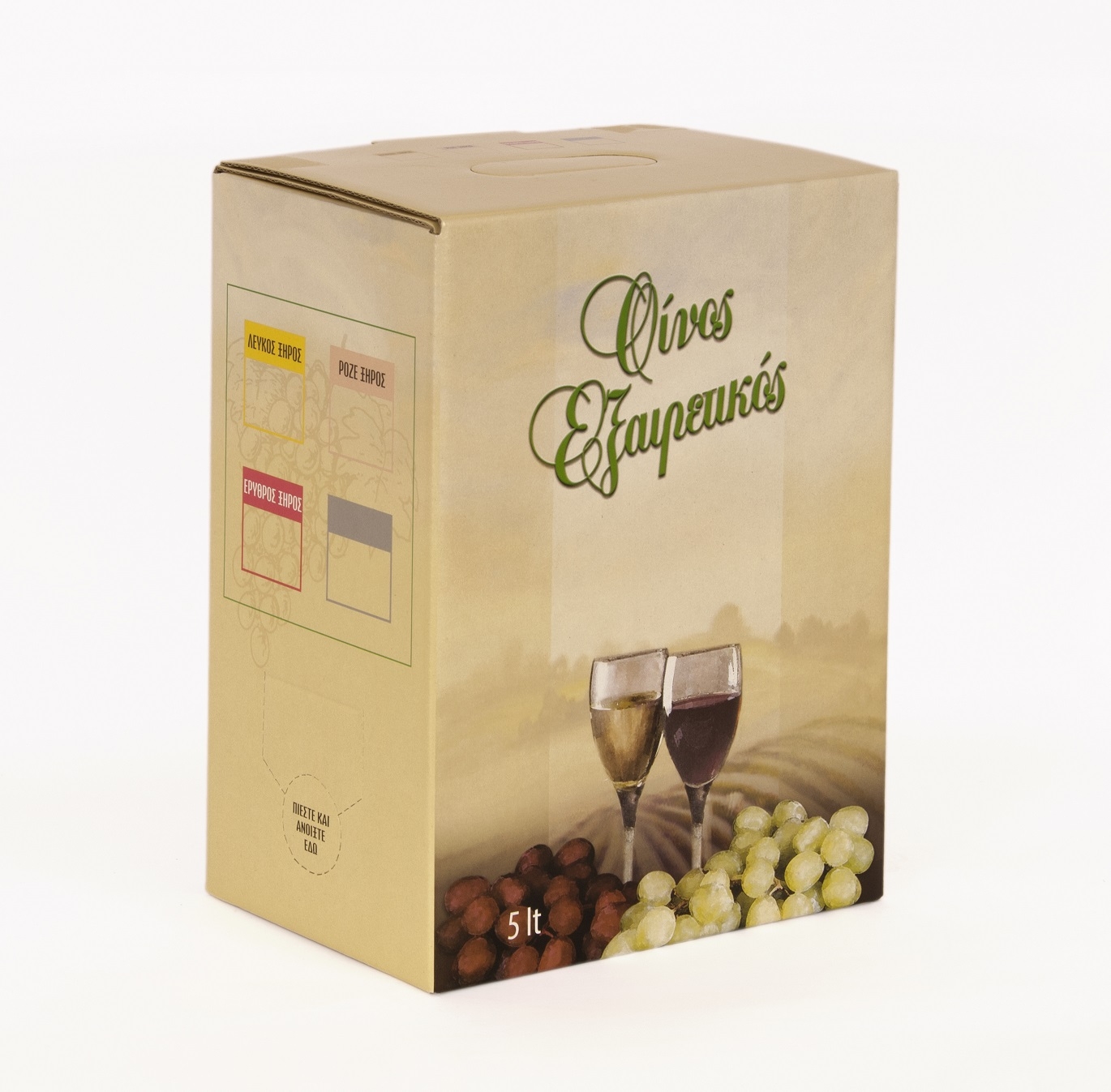 - Όλα τα χαρτοκιβώτια φέρουν ενδείξεις για "λευκό", "ροζέ" ή "ερυθρό" οίνο